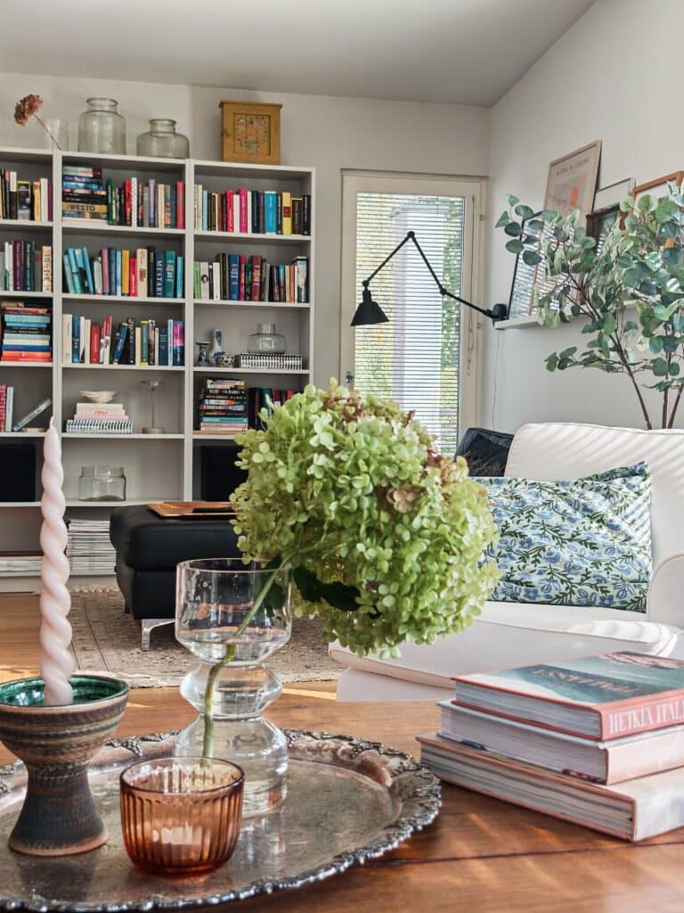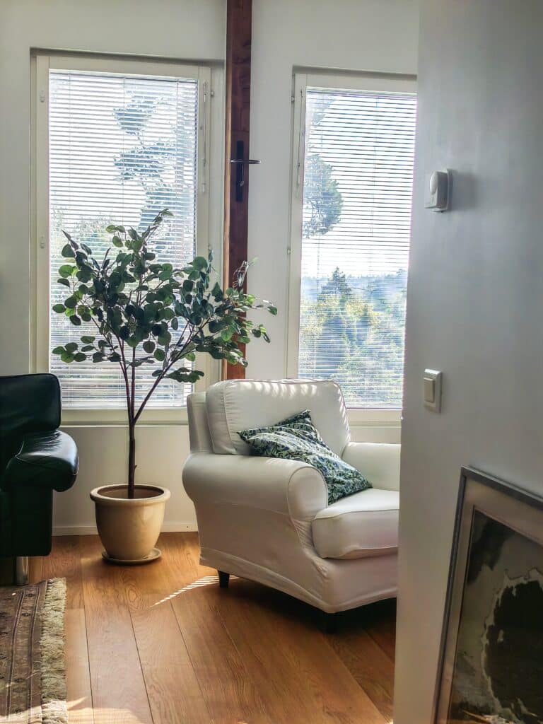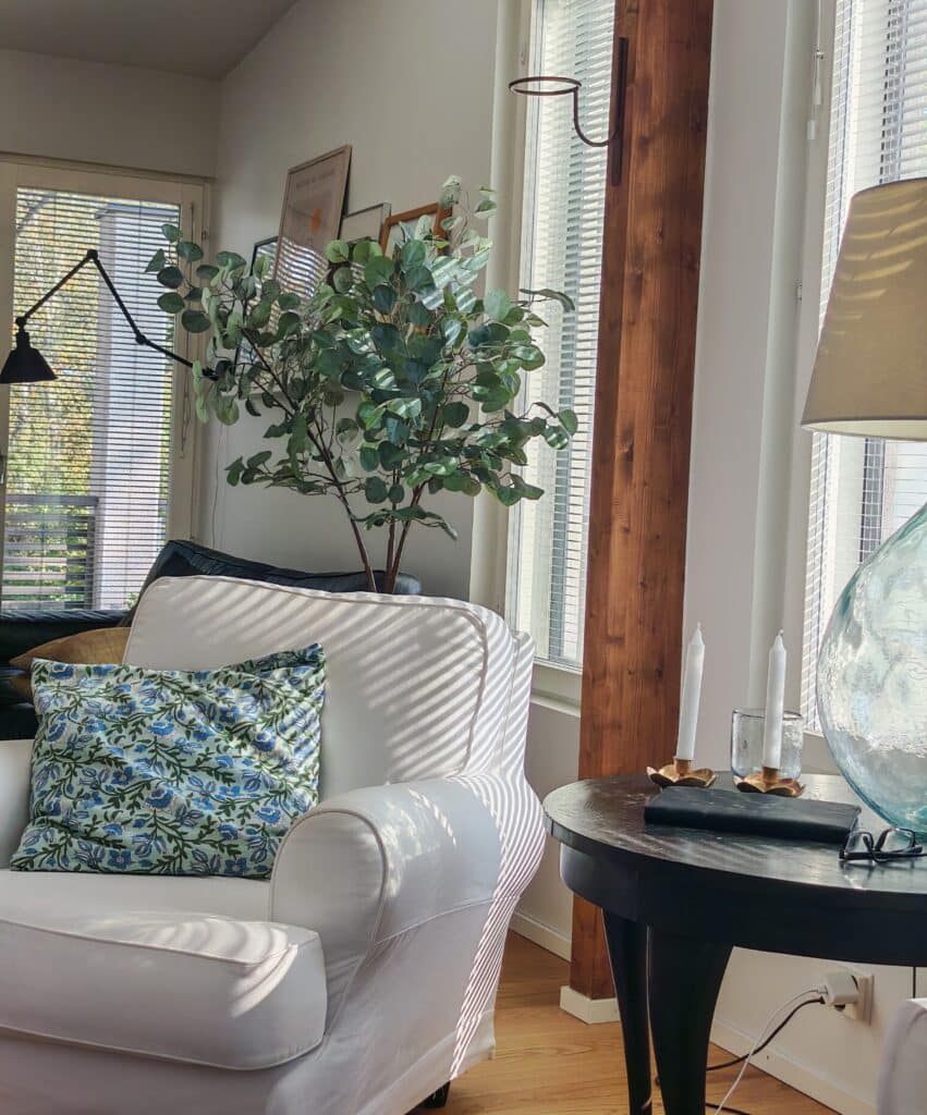 Olen kaivannut olohuoneeseen tuohon ikkunan eteen jotain vihreää jo pidemmän aikaa. Samoja kasveja en kuitenkaan kelpuuta, koska haluan vaihtelua ja uutta ilmettä. Myös se, että halusin kasvin lattialle, tarkoitti sitä että sen pitäisi olla varrellinen ja puumainen. Siinäpä pulma, jota olen yrittänyt ratkaista jo pidemmän aikaa. Mutta löytyihän siihen ratkaisu!