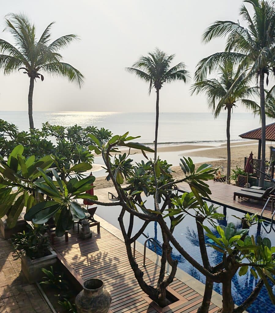 Balilaistyylinen hotelli sijaitsee meren rannalla Pranburissa, kauniin puutarhan keskellä. Bangkokista on kylään reilun kolmen tunnin automatka Hua Hinin ohi. Nyt kun valtava hanke, uusi ohitustie, on valmistumassa, matka tulee nopeutumaan. Hotellin edessä aukeaa pitkä ranta molempiin suuntiin ja tilaa on sekä surffaajille että kävelijöille ja uimareille.