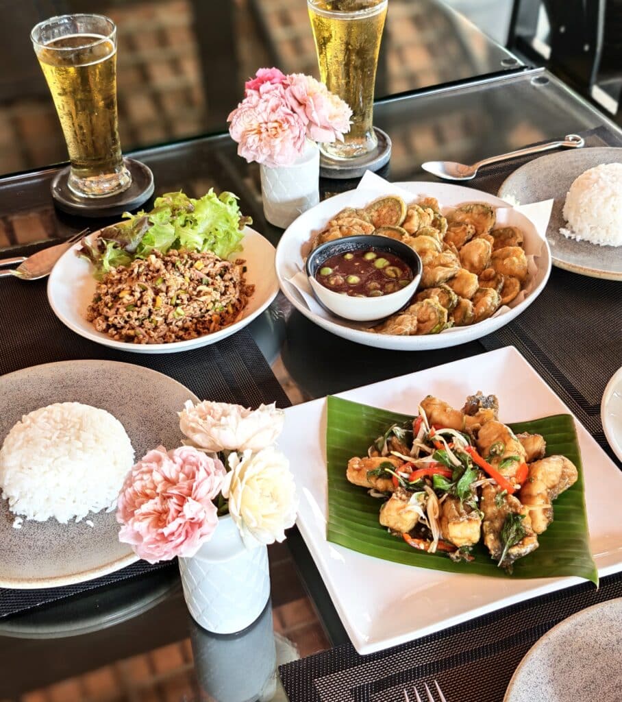 Hotellissa on erinomainen ja kohtuuhintainen ravintola, mikä on tärkeää näin pienessä kylässä. Kokki taikoo terveellistä ruokaa, aitoja thaimakuja sekä lounaalla että illallisella.