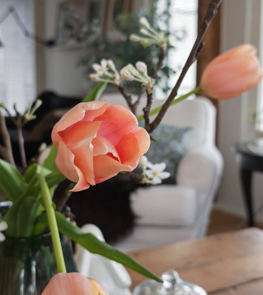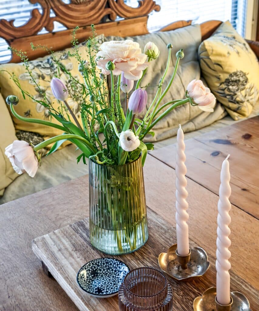 Olen myös yrittänyt laittaa kotia vähän pääsiäiskuntoon. En välitä sen kummemmin koristella, mutta kukilla on siinäkin iso merkitys, sisällä ja ulkona.