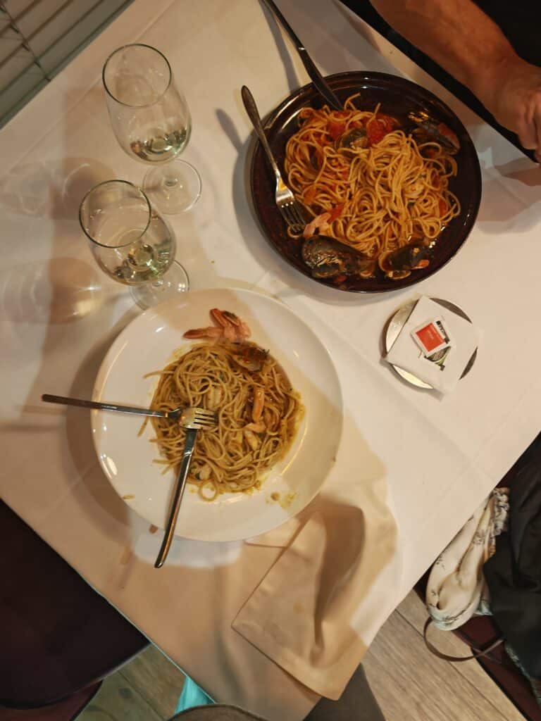 Se, mihin ollaan törmätty vain kerran aiemmin, San Sebastianissa, oli ravintoloiden aukioloajat. Ne aukesivat lähes poikkeuksetta vasta kello 20.30! Tämä vaati vähän enemmän pohdintaa ruokailun rytmin suhteen. Saatiin silti syödäksemne ja olikin mielettömän hyvää pil-pil pastaa! Ravintola oli Stanley & la Marco.