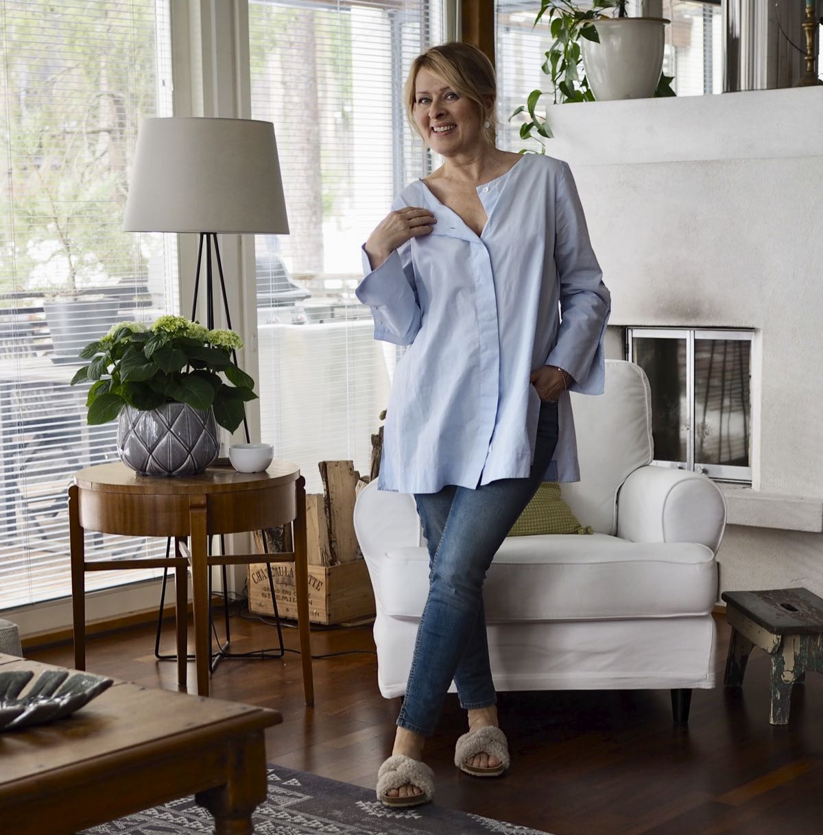 Hei Maarit, sinulla on taito kiteyttää asiat loistavasi ja saada lukija pohtimaan. Ajattelen säännöllisesti, miltä kokonaisuus näyttää ja onko siinä mukava olla. Jälkimmäinen on tärkeää arjessa ja no joo juhlassakin (joita ei enää edes muista olevankaan ;). Valkoista teepaitaa en osaisi kuvitella päälleni minkäänmuotoisella pääntiellä.