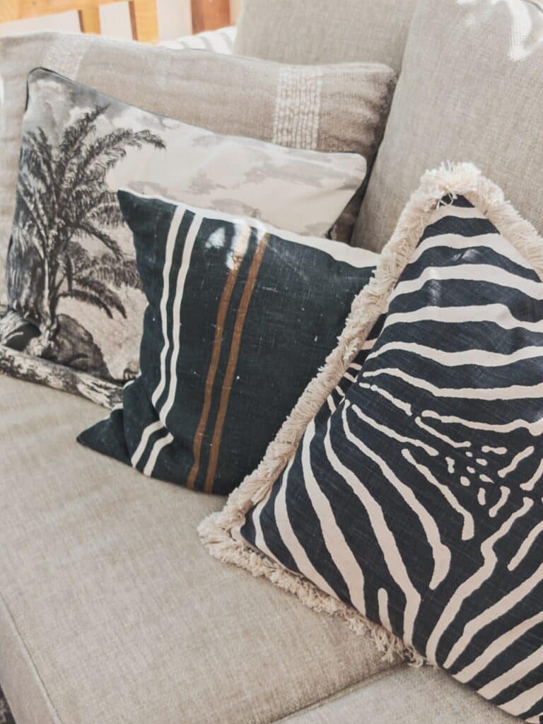 Olin kaivannut seepraraitaa tänne jo pitkään ja mietin, että tekisin tyynyt noiden rahien päälle, mutta kaverin mielestä se olisi tehnyt ilmeestä levottoman. No nyt on maltillisesti seepraa sohvalla!