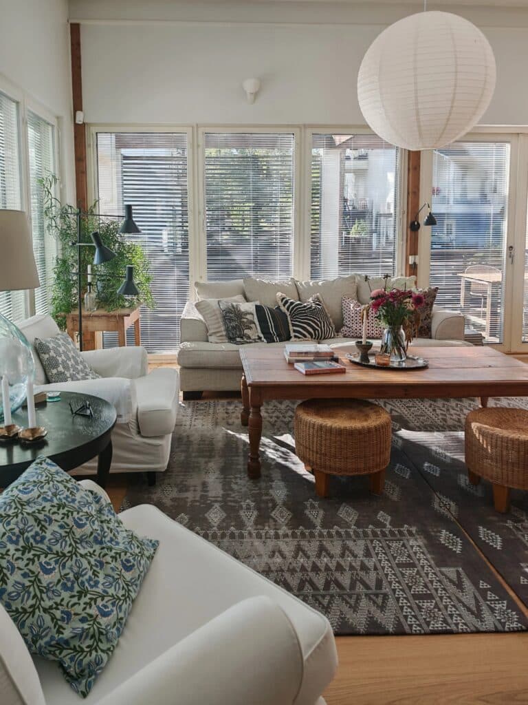 Koti on ollut koko kesän hunningolla. Mökeillä reissaaminen on verottanut kotona puuhastelua ja etenkin siivousta ja tiedättekö, että olen itse asiassa aika iloinen siitä, että olen pystynyt ummistamaan silmäni näiltä asioilta. Kyllä meillä on monen mielestä varmasti aina siisti koti, mutta siivous onkin toinen juttu. Se on hoidettu luvattoman huonosti. Ja kun meillä on nyt tämä ihana vaalea Tarkett-tammilattia, siinä ei näy edes villakoirat, jotka hoputtaisi imuroimaan. Kerran meillä käytiin tämä keskustelu, niihin aikoihin kun lattia oli juuri asennettu eli viime vuonna. Sanoin miehelleni, että tämä on vähän ikävää kun nyt ei nää pölyn määrää niin että pitäisi imuroida. Hän ei ymmärtänyt tätä naisnäkökulmaa ollenkaan, koska aiemmin valitin sitä kun yksikin pölyhiukkanen näkyi tummalla lattialla. Heh.