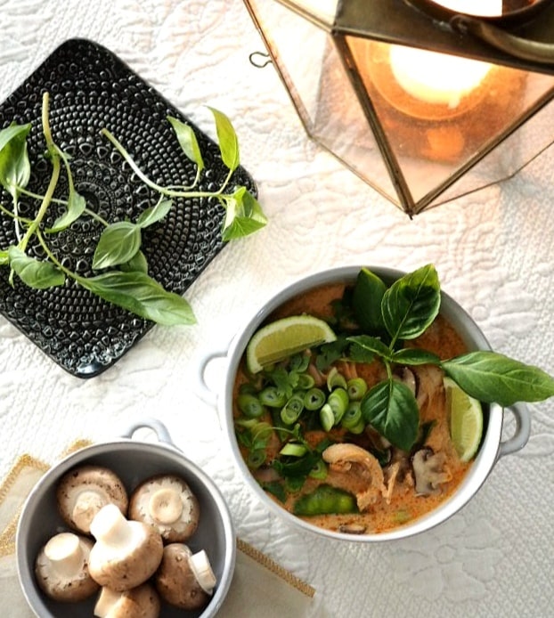 Halusin jatkaa näitä makuhetkiä kotona ja olen vuosien mittaan kokeillut mitä moninaisempia thai-reseptejä ja aina niistä on jäänyt jostain syystä puuttumaan se huumaava kuuluisa ja koukuttava Thaimaa-säväys. Nyt tuunasin red curry -ohjetta joka tuli vastaan täällä somessa ja nyt on kuulkaa sellainen makuelämys, etten ole Aasian matkojen jälkeen tällaista saanut missään. Red curry, punaisella currytahnalla maustettu kana-nuudelikeitto, jossa maistuu ja tuoksuu thaibasilika, korianteri, lime, inkivääri, kookosmaito… Sopivasti tulisuutta, hiukan makeutta, tuoreiden yrttien aromeja. Tämä on todellakin parasta mitä olen pitkään aikaan kokannut.
