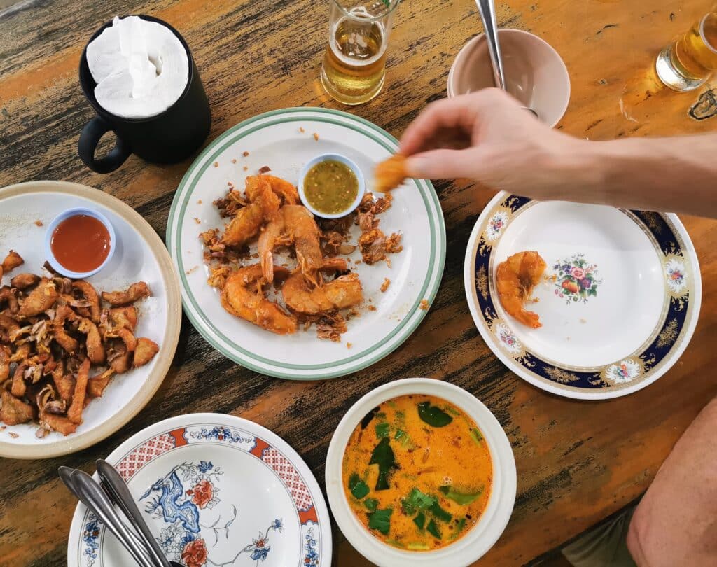 Thaimaa on Italian ja Portugalin rinnalla suosikkimaitani myös ruoan suhteen. Muistelen edelleenkin kaiholla ruokahetkiä pienessä thaimaalaisessa Pranburin kylässä, jossa kävimme vuosikausia aina k-keääseen asti. Hurautimme usein vespalla pieneen hotelliin kevyelle lounaalle. Söimme siinä paikassa usein ravuilla ja kasviksilla täytettyjä kevätrullia – kevyttä ja maukasta, ja täydellistä trooppisen ilmanalan ruokaa. Pöytään tuotiin lisäksi aina maljakko täynnä aromaattisesti tuoksuvaa thaibasilikaa, josta otettiin mieleiset omaan annokseen. Sitä tuoksua en unohda koskaan!